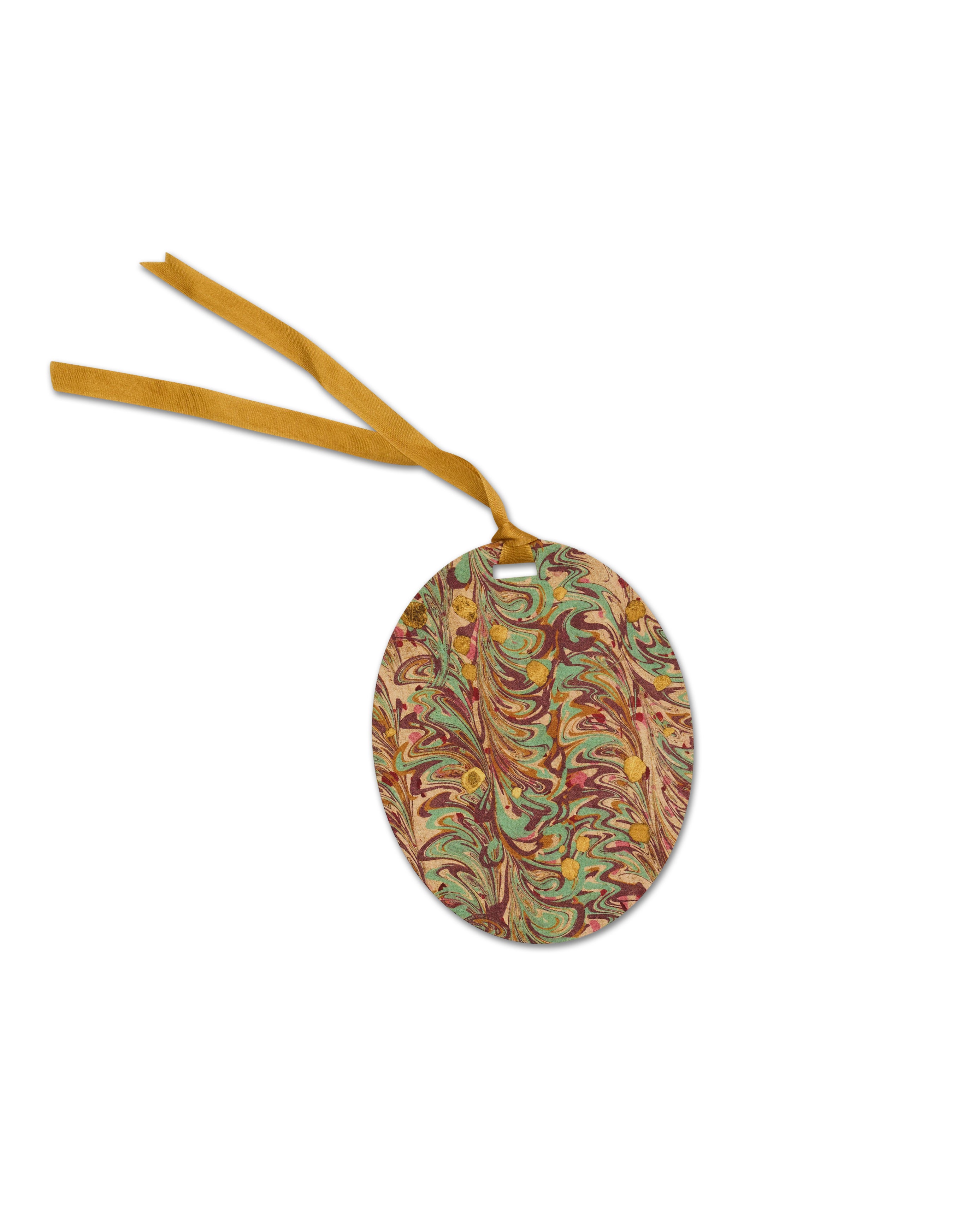 Each set includes 6 tags & 6 adhesive labels in mixed designs, featuring silk ribbon ties in butterscotch & caramel. The set is presented in a charming labelled pochette.