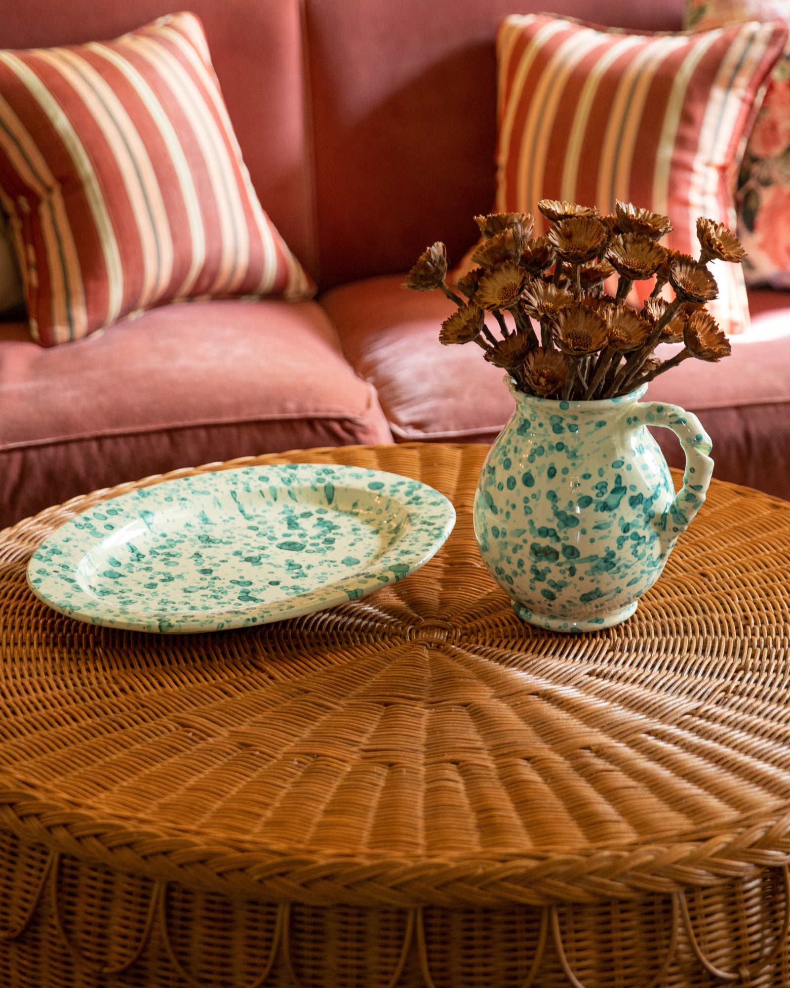 Sunday lunch never looked so stylish. Delight your guests by serving up on our signature splatter platter, handmade in Italy and available in four colourways: Pink & Blue, Tan & Ivory, Terracotta & Cream, and Yellow & Verde.