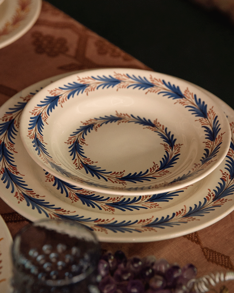 A soup bowl not just for soup! The perfect set of bowls for casual, easy entertaining: pile high with pasta, salads or risotto for your guests. The Heather soup bowls are hand-painted in Spain and come in two beautiful colourways: blue and pink, or pink and tan. Style them with our Vine tablecloth in pink, and our Little Flower napkins in blue.