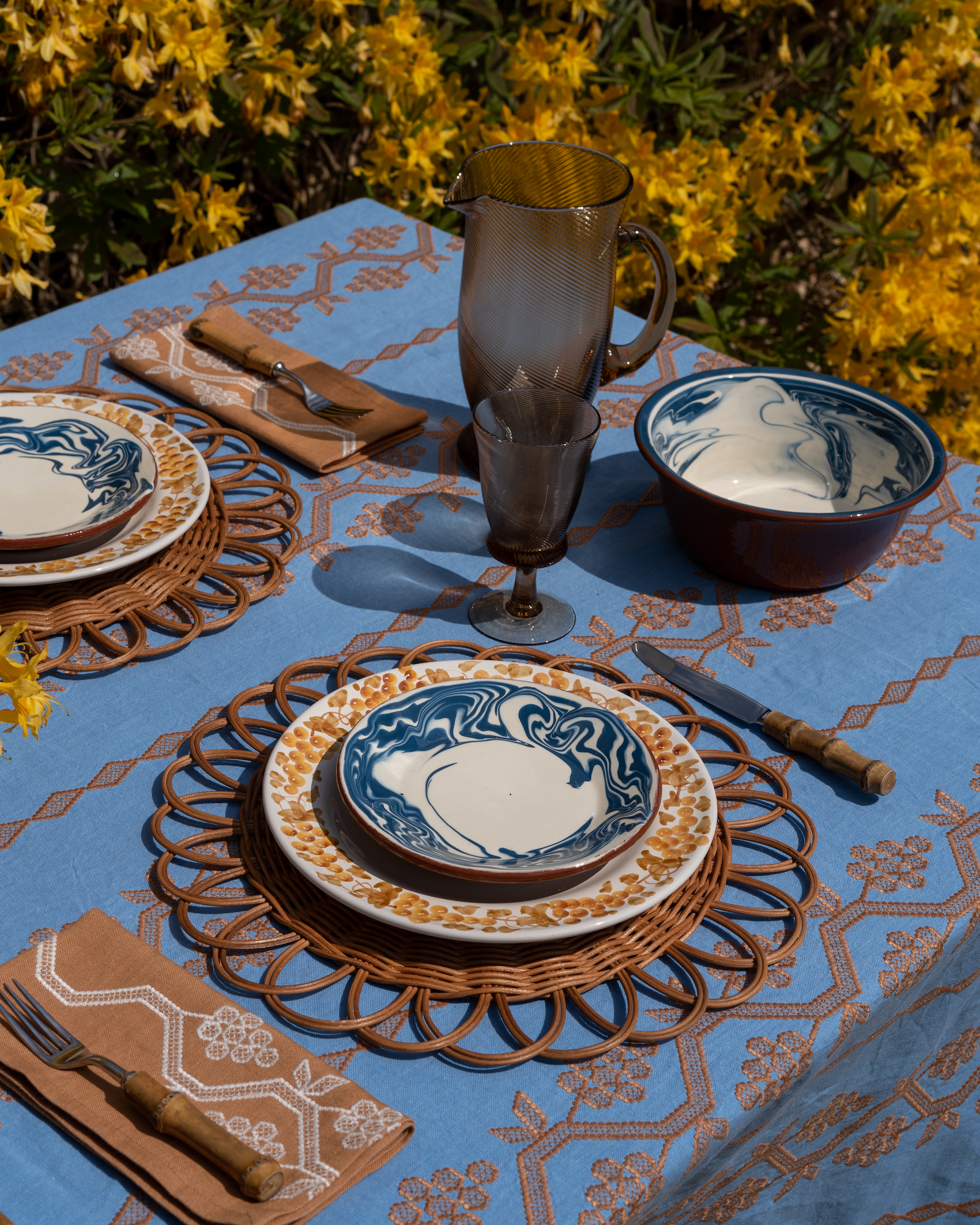 Handcrafted in Bulgaria, our Marbre collection brings a rustic elegance to any table setting, with its dreamy marbled pattern. Available in blue, green and brown, the Marbre collection comprises of dinner plates, side plates, large bowls, small bowls, jugs and mugs.
