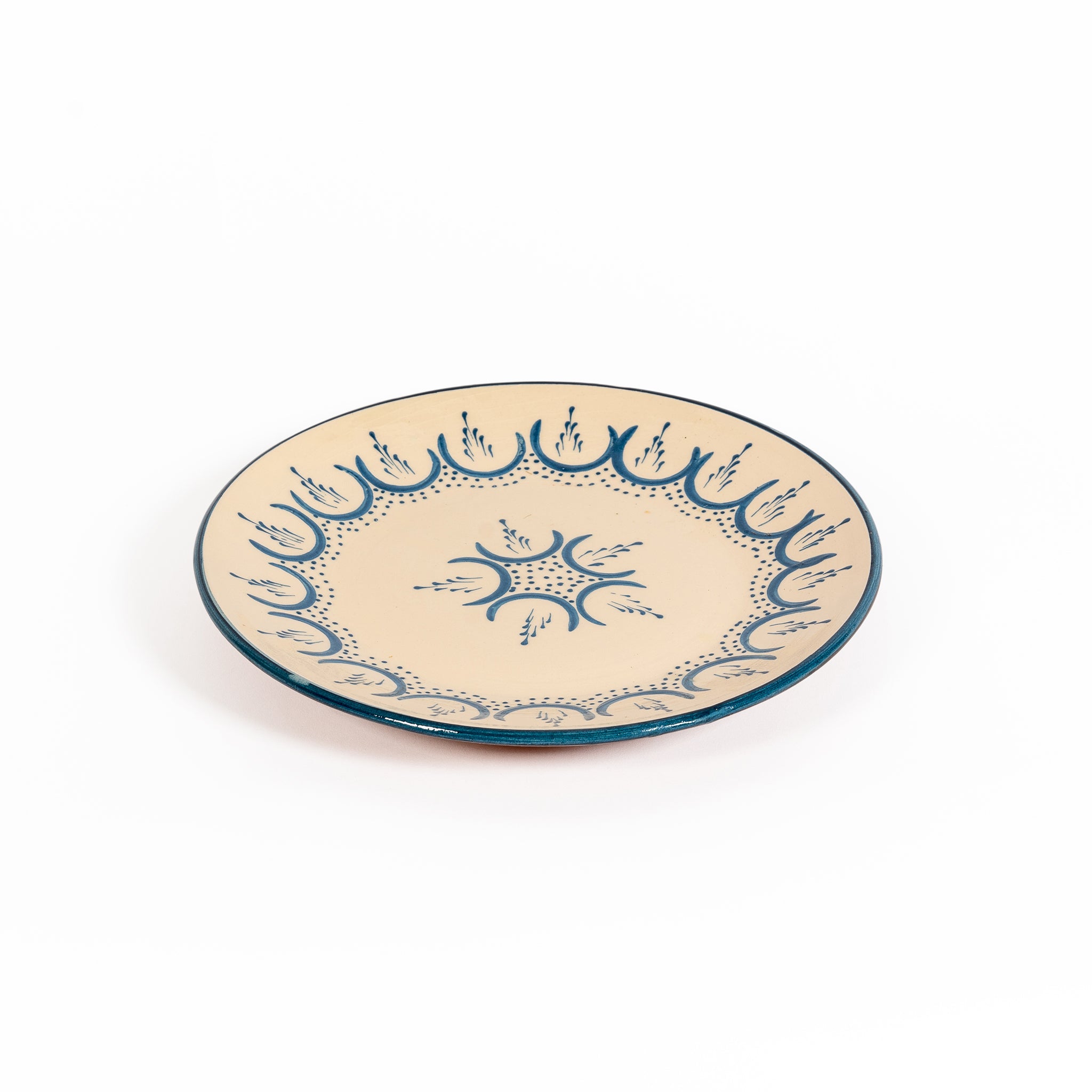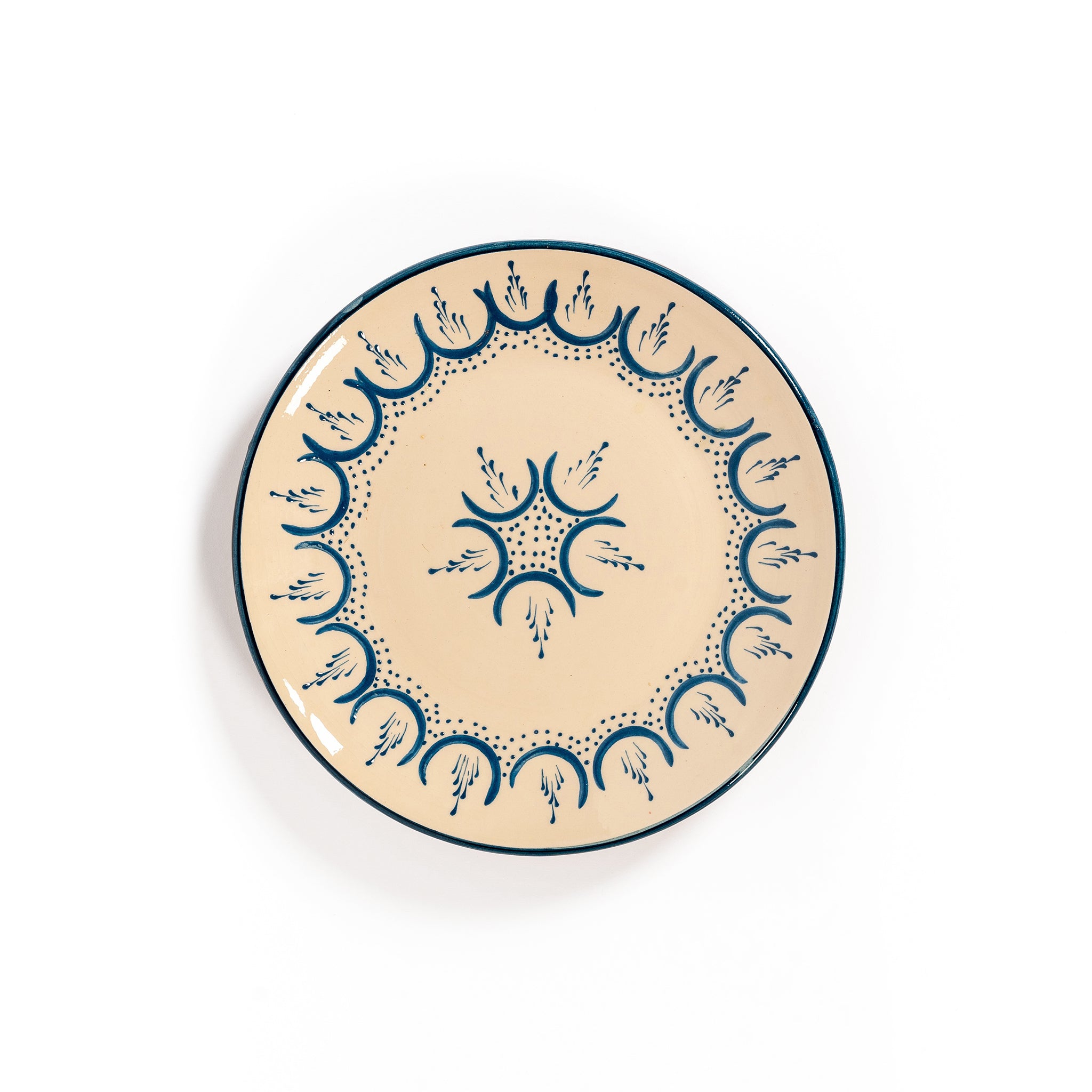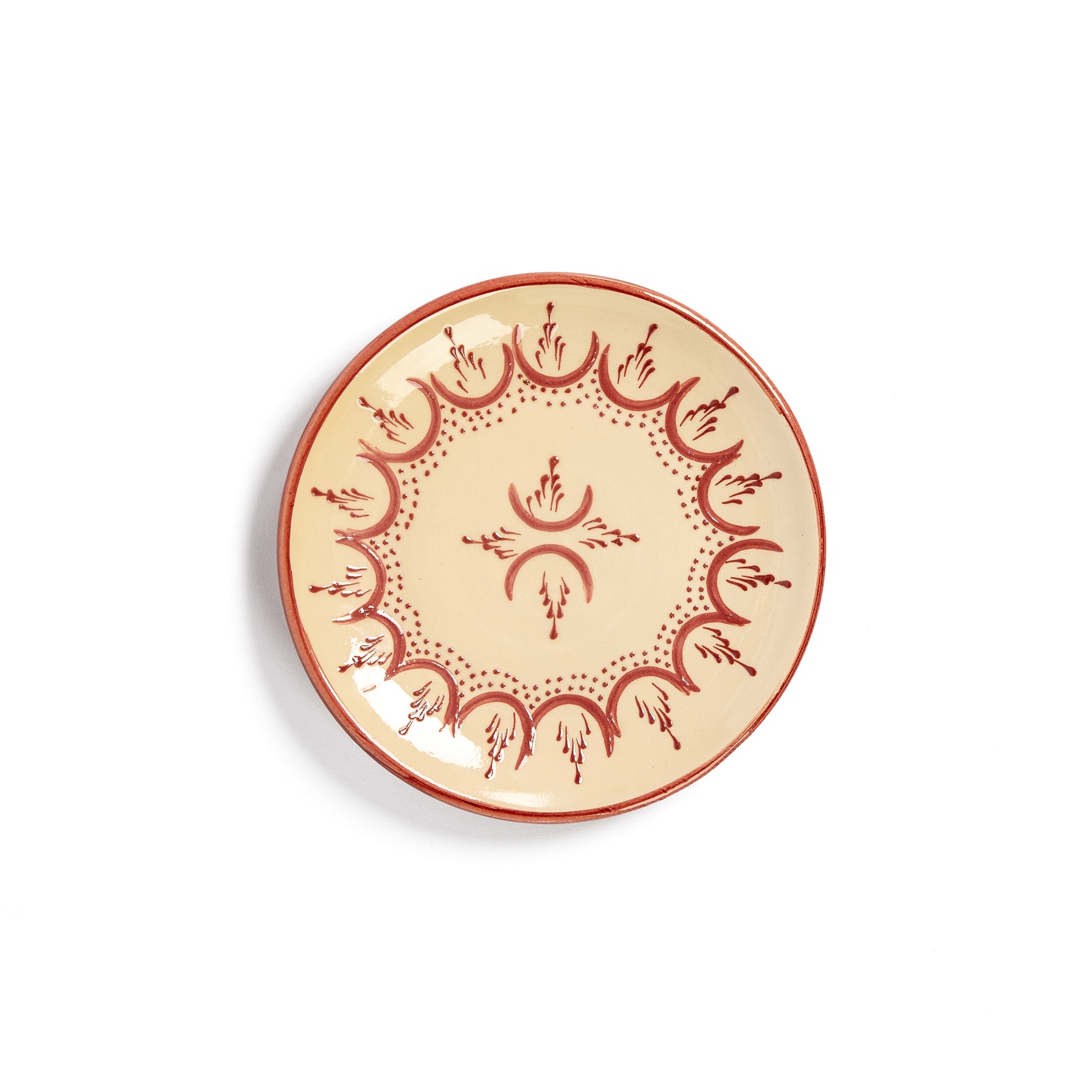 A rustic dinner plate handmade and hand-painted in rural Spain, using traditional techniques. Our Pintora plate features dusky pink decoration on an ivory background. Perfect to mix and match with the other coloured ceramics in and our hand-embroidered Vine tablecloth: picture an al fresco meal with friends full of laughter and wine!