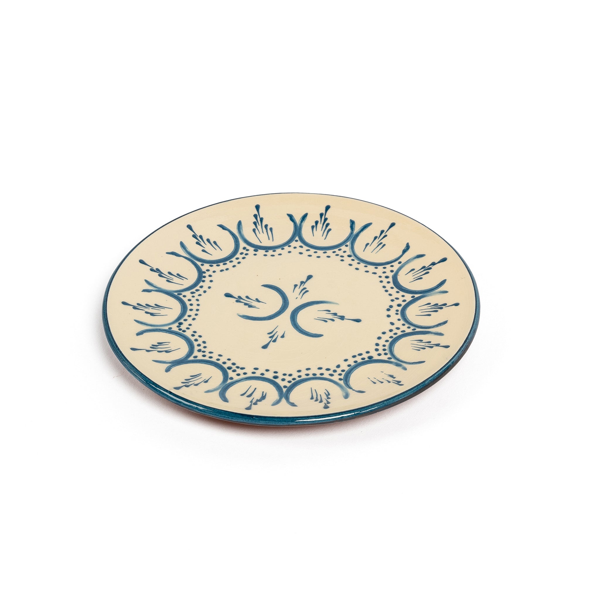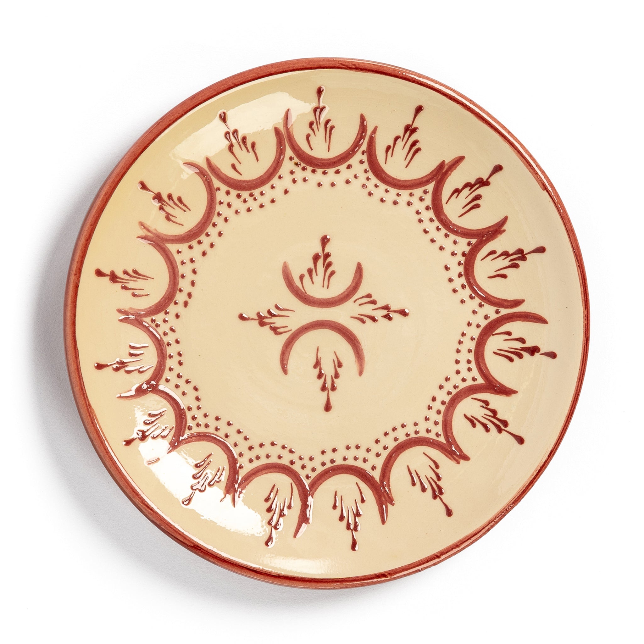 A rustic side plate handmade and hand-painted in rural Spain, using traditional techniques. The Pintora side plate features dusky pink decoration on an ivory background, adding a touch of elegance to any room in the house - holding jewellery on your bedside table, as a soap dish in the bathroom, under a plant pot, or of course - on the table!