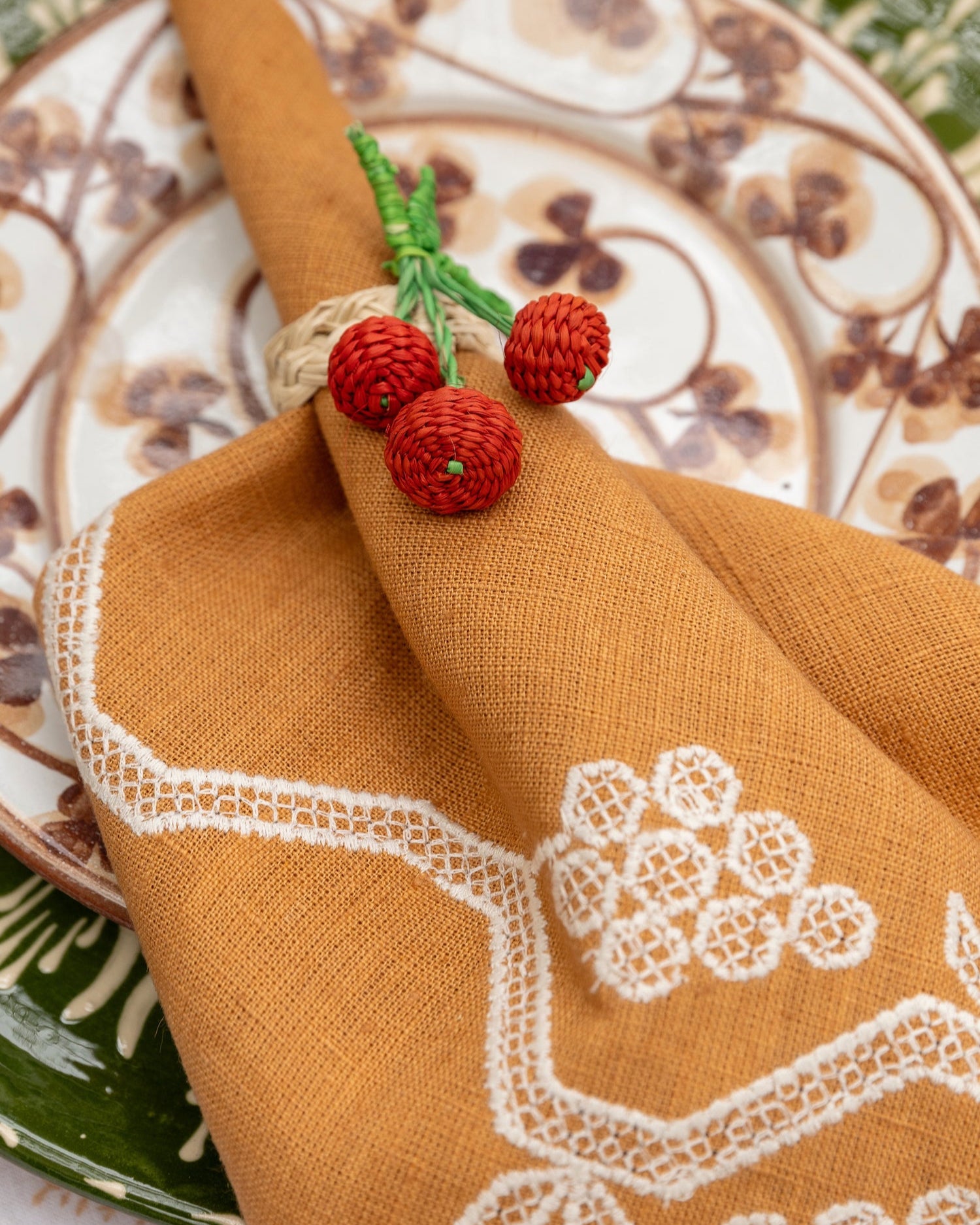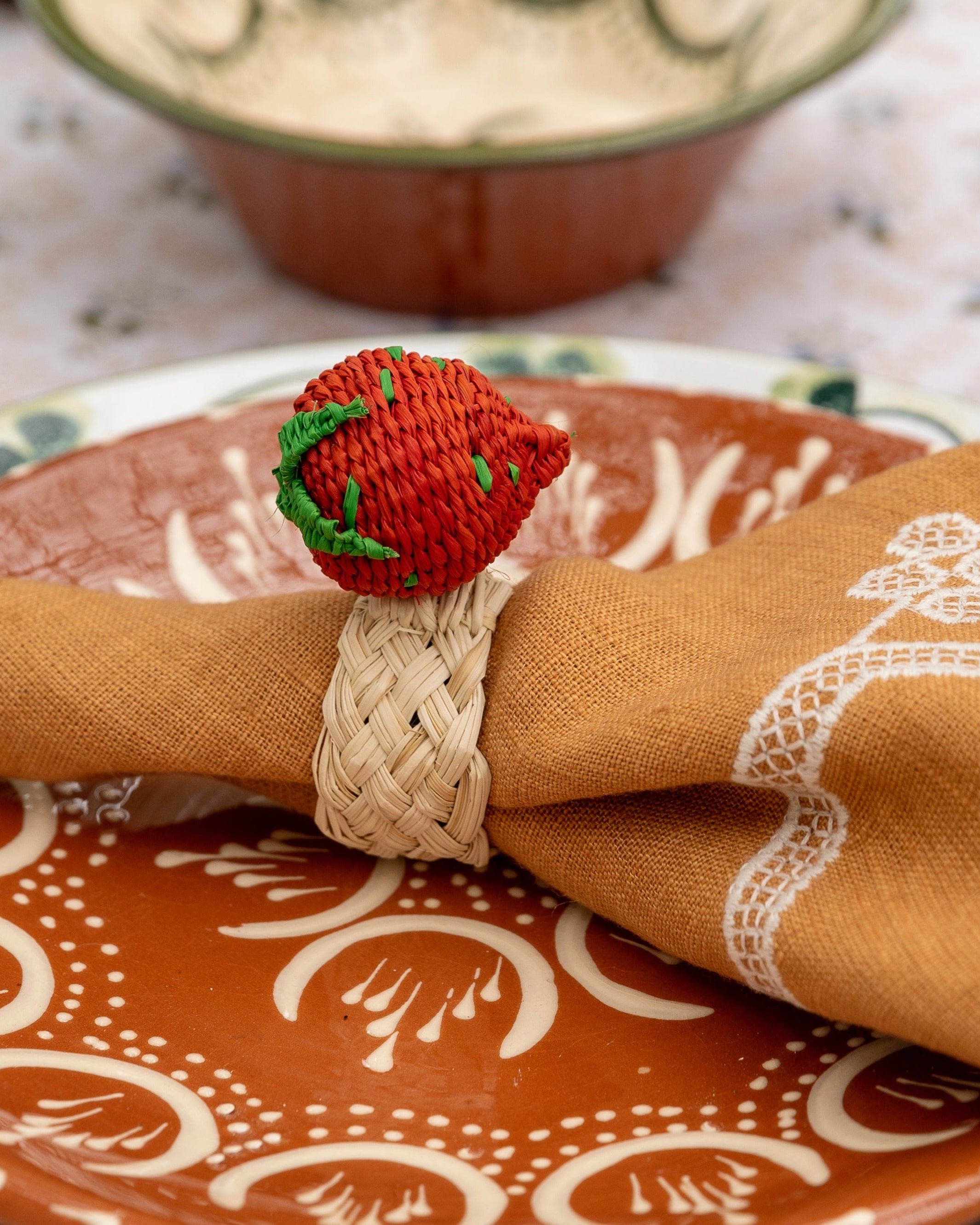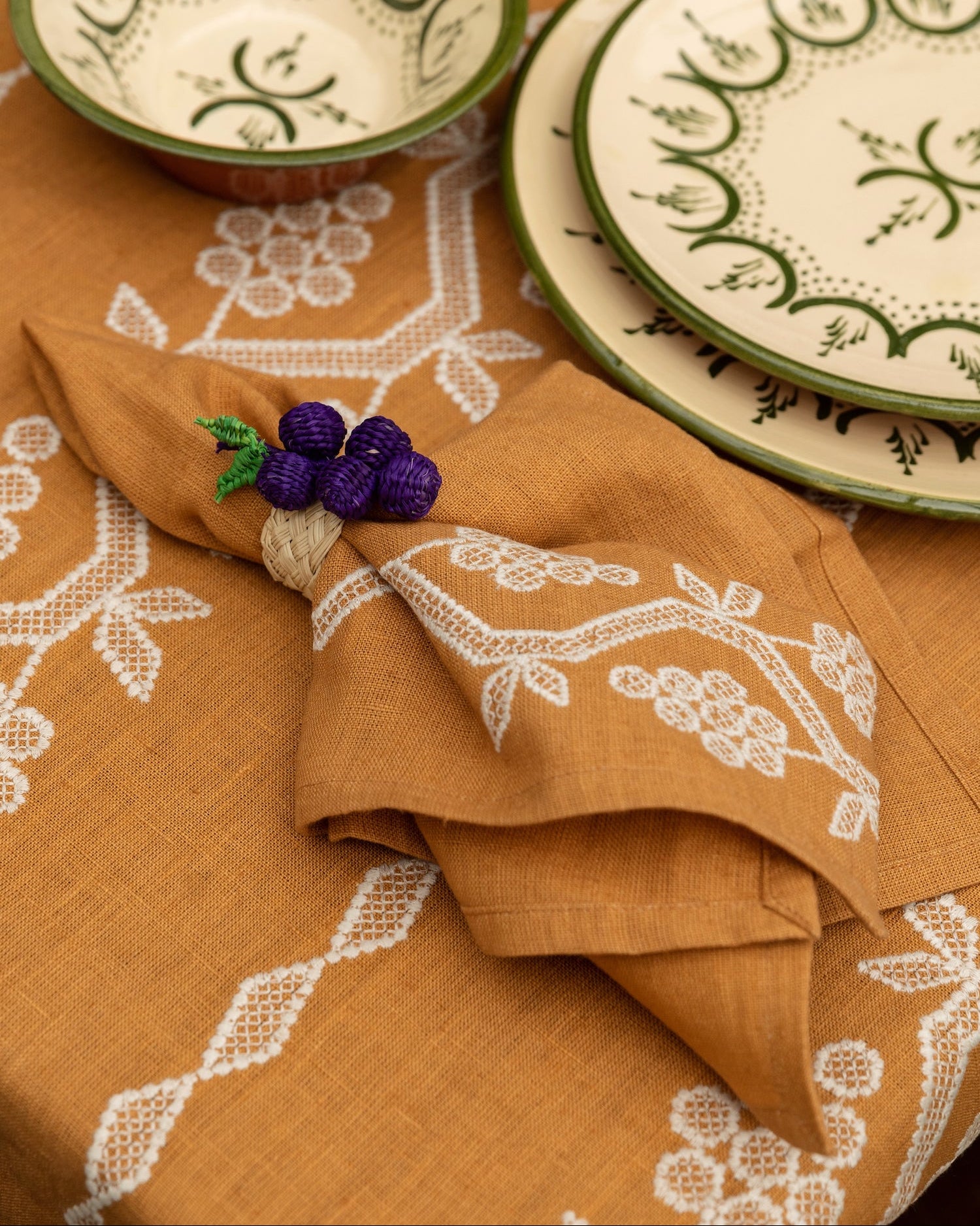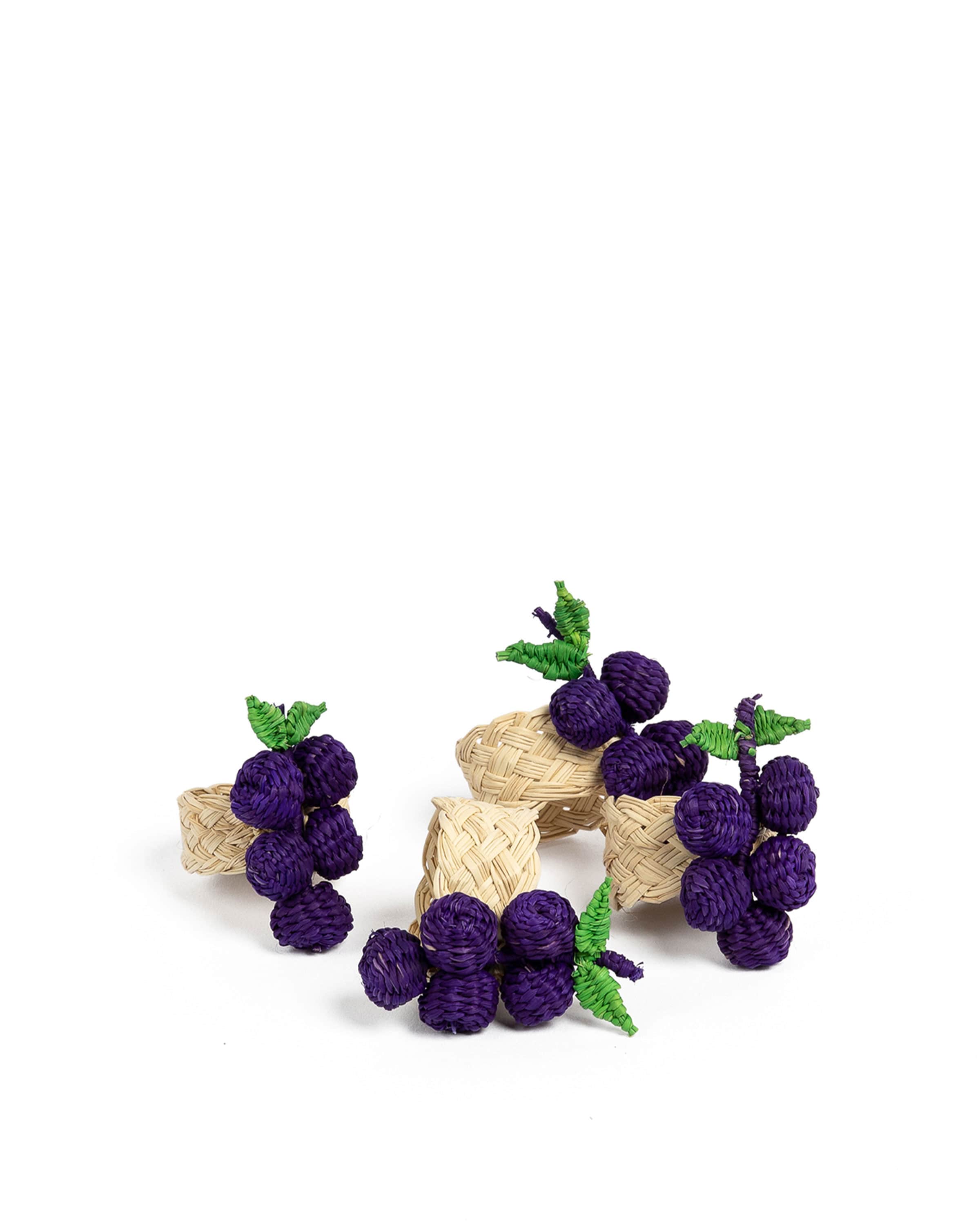 Hand-woven by artisans, our grape iraca palm napkin rings are a beautiful way to add a pop of colour and fun to your table. Available as a set of four, other fruit designs available include , , and .