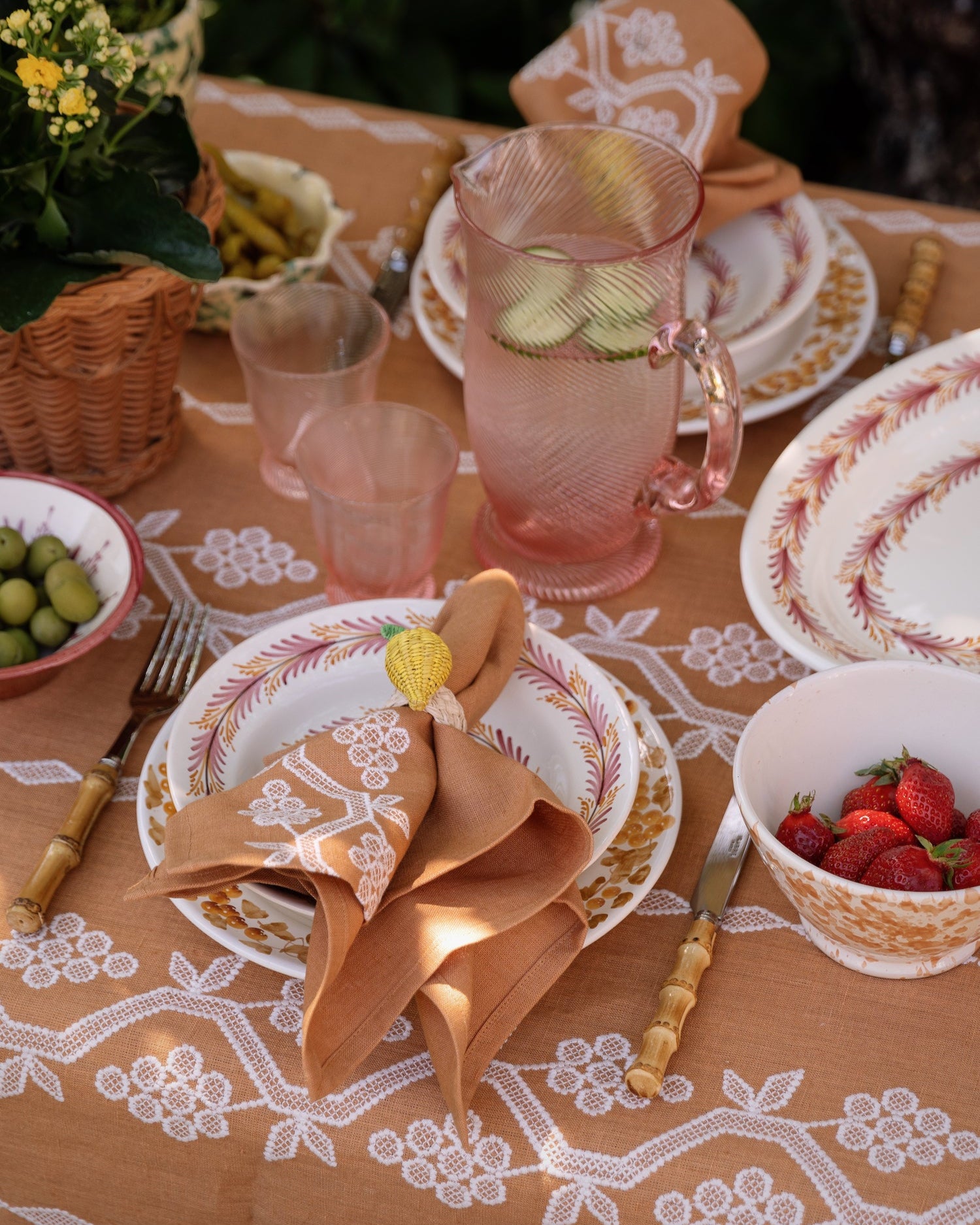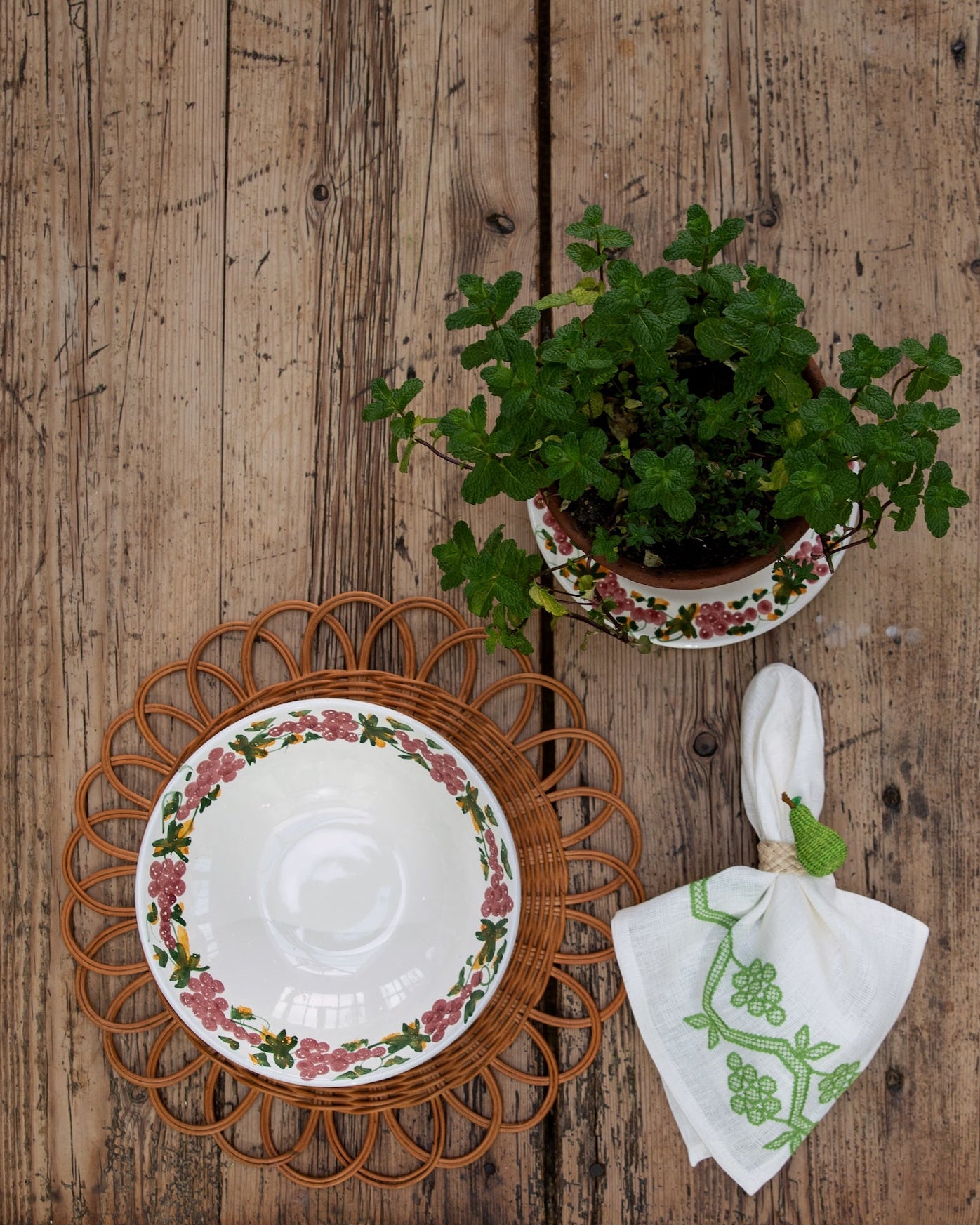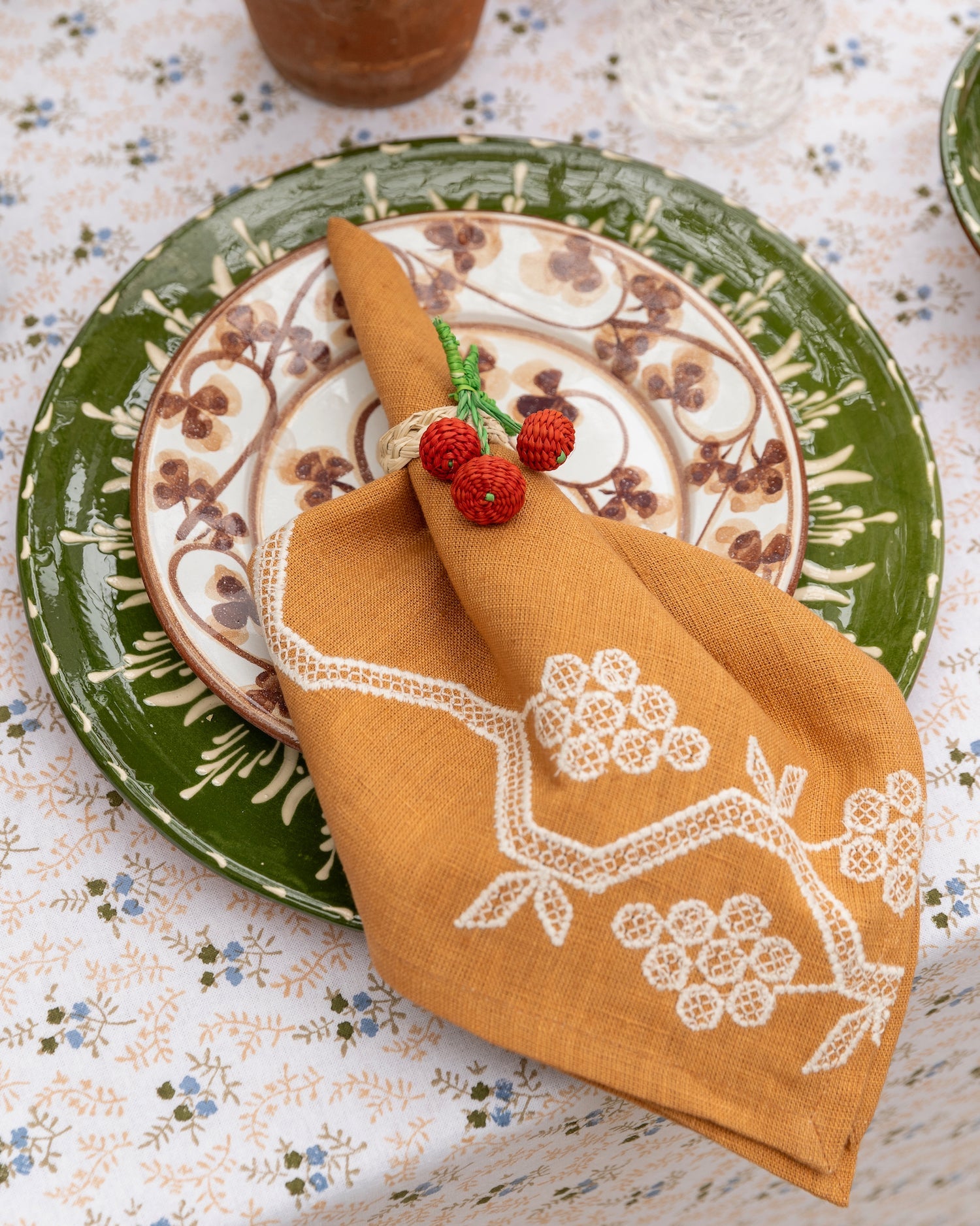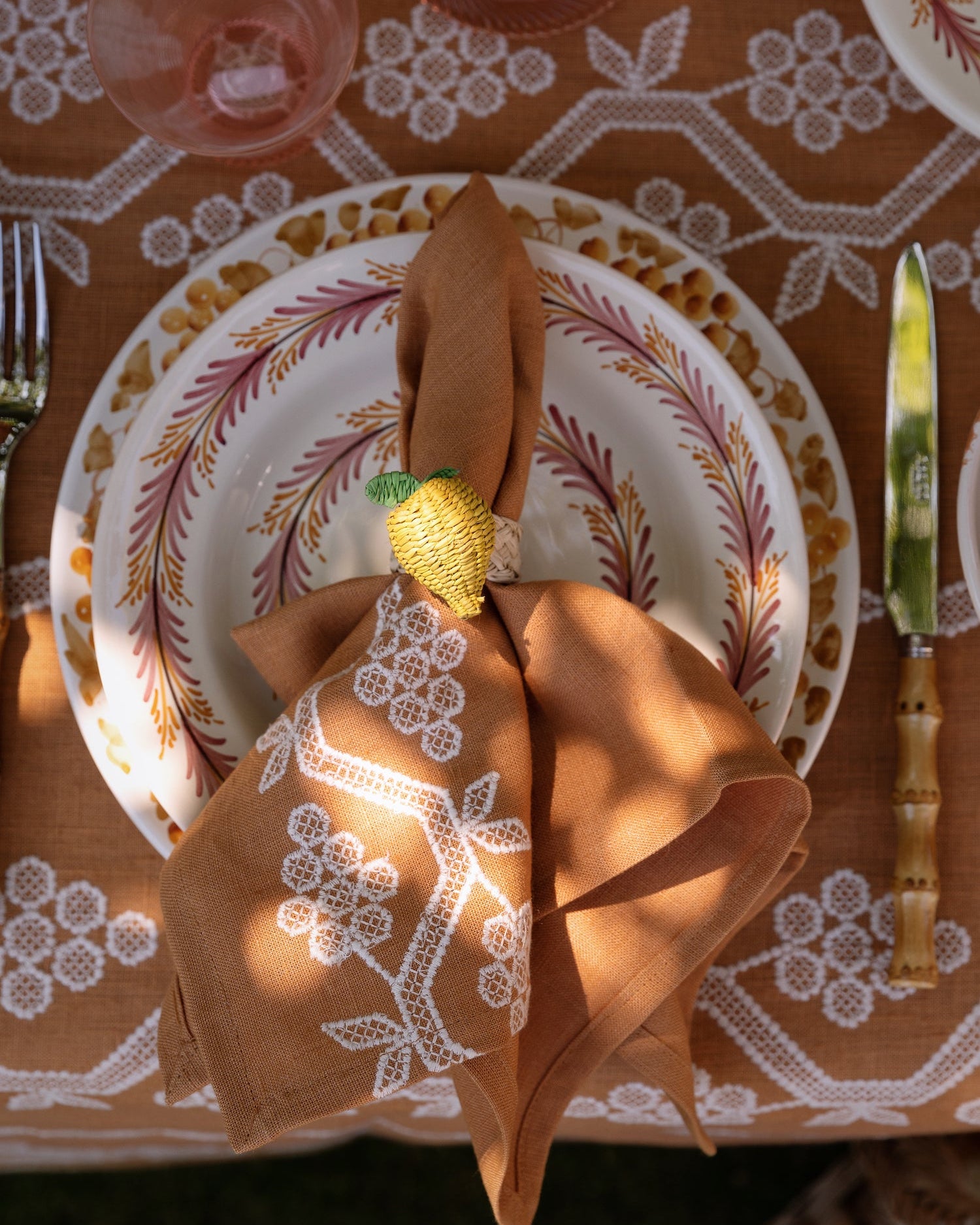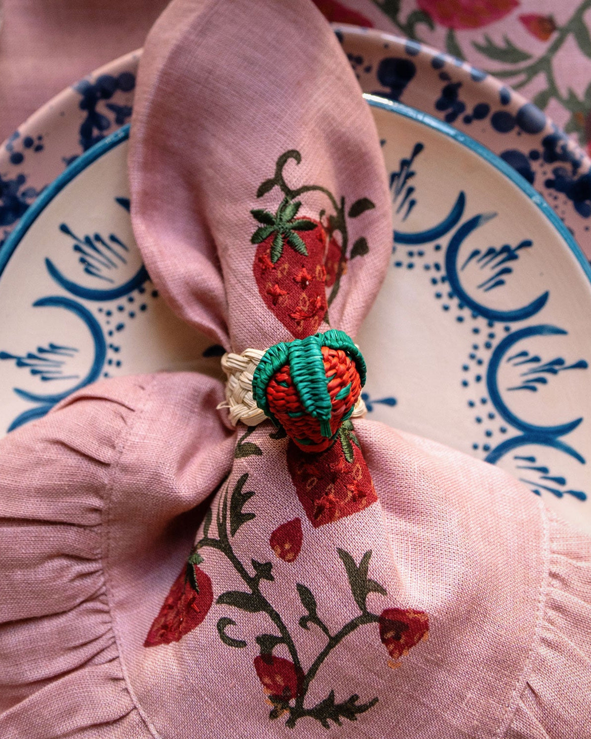 Hand-woven by artisans, our grape iraca palm napkin rings are a beautiful way to add a pop of colour and fun to your table. Available as a set of four, other fruit designs available include , , and .